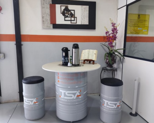 Temos uma recepção simples porém aconchegante, para receber clientes ou amigos para tomar um café, bater um papo, tirar alguma dúvida ou até mesmo observar enquanto aguarda.